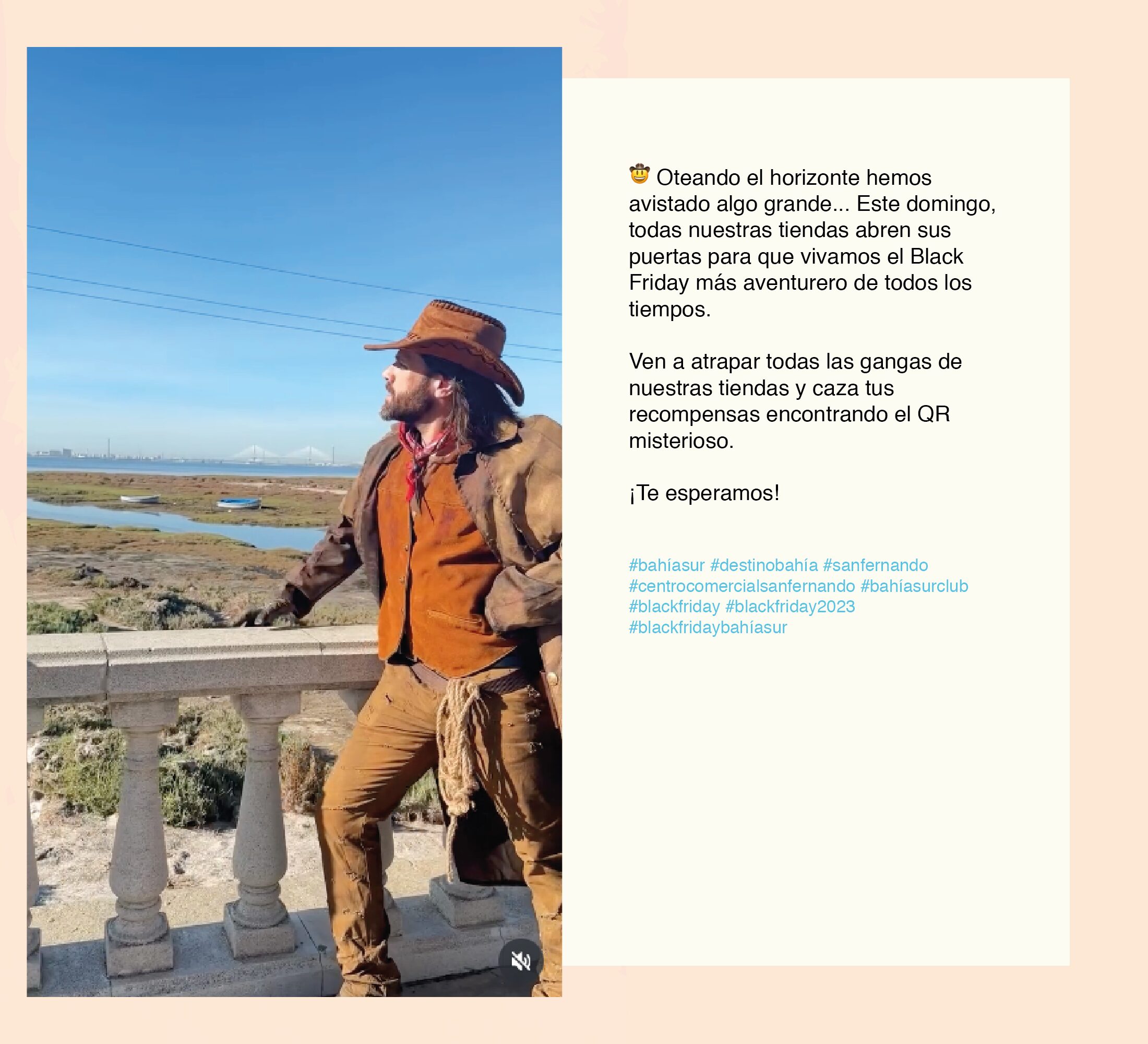 Y en paralelo, una comunicación constante en redes: reels, carruseles, posts y stories, todos con humor y estética western, incluyendo las publicaciones de las ofertas de tiendas, que también se integraron en el universo narrativo de la campaña.